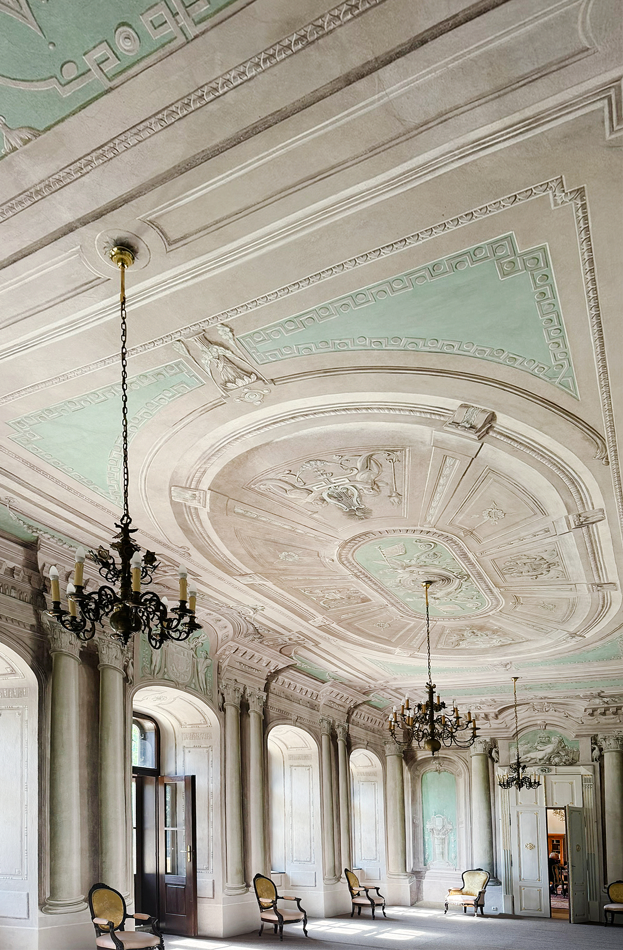 Restaurování nástěnných maleb v hlavním sále zámku Zdislavice