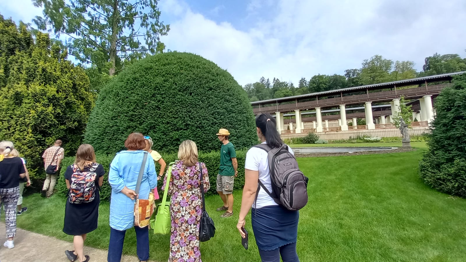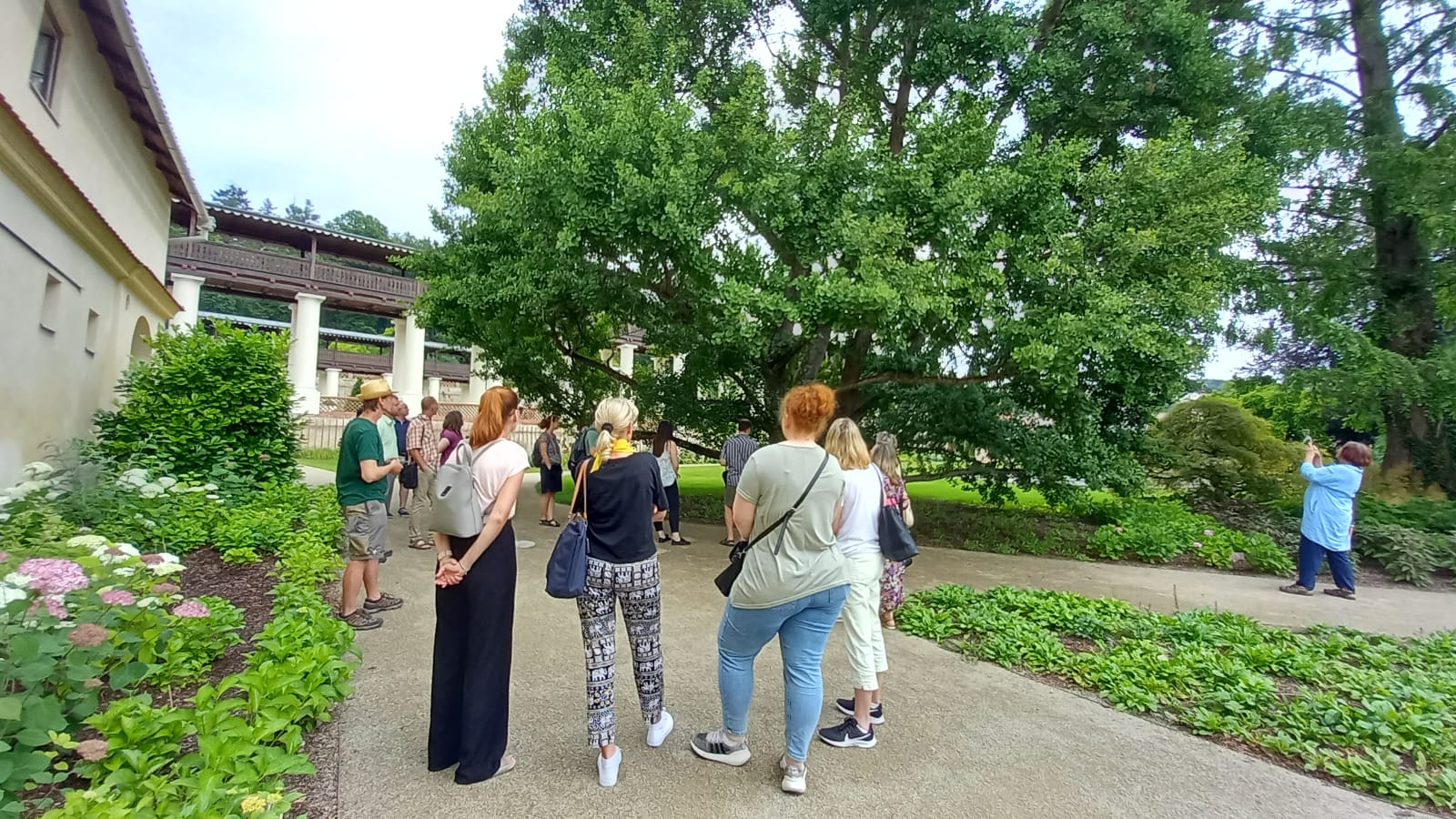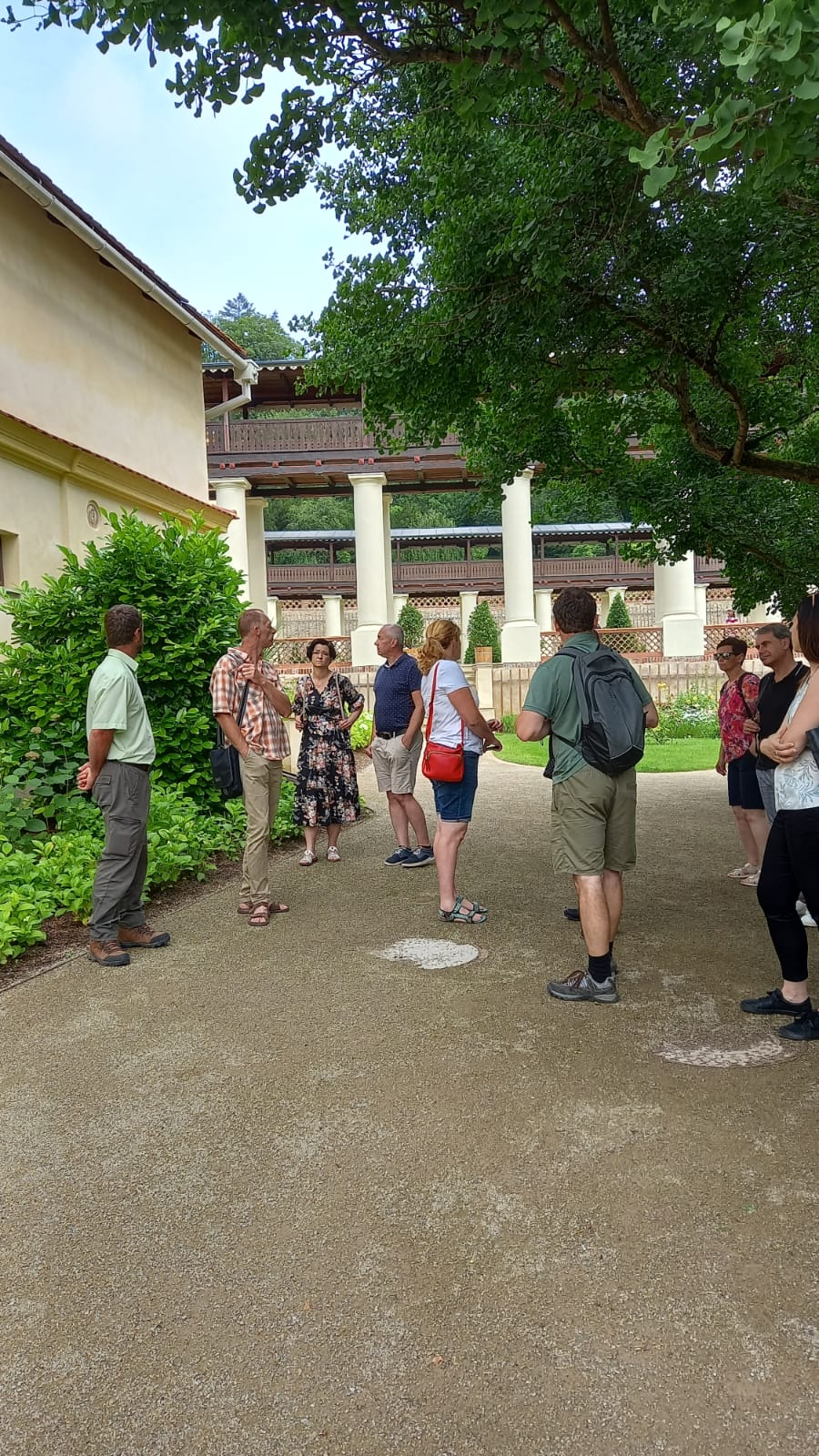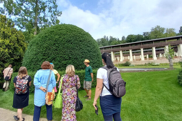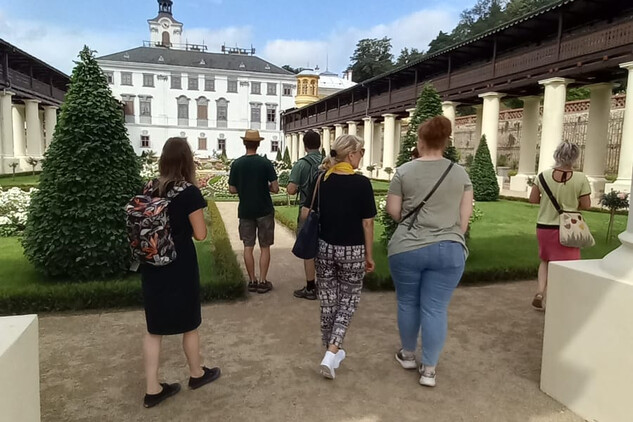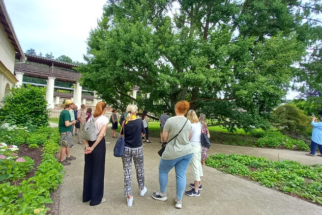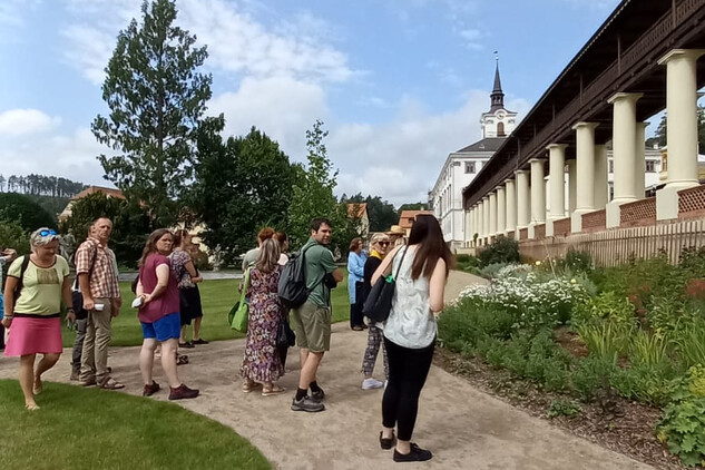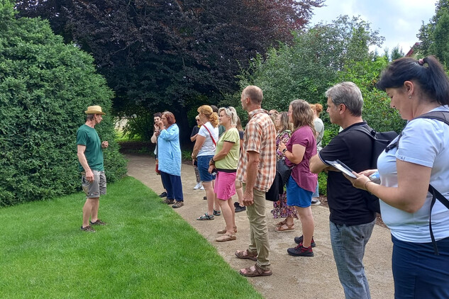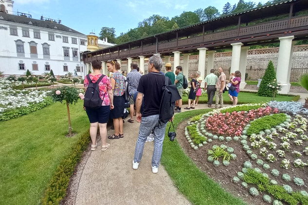 Ve čtvrtek 27. června 2024 si obnovenou zámeckou zahradu v Lysicích, která je unikátní svým terasovitým založením a kolonádou s krytou pergolou, prohlédlo cca 40 odborných pracovníků Národního památkového ústavu z celé České republiky.